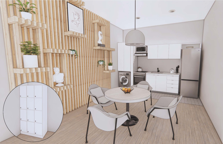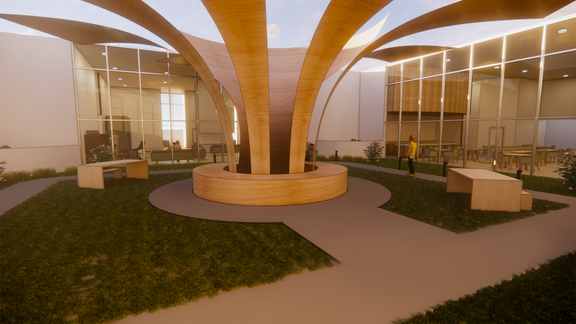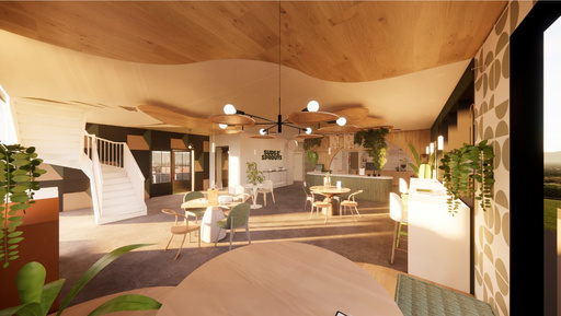 existing materials will be supplemented by the addition of clean and fresh finishes that will captivate the users. This project also involves the reconfiguration of the current cafe to accommodate both the existing functions as a cafe and community space. The cafe additionally will now have the function of being able to use it for lectures or events, and the kitchen will be able to provide catering for all IDeAL events.