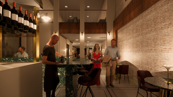To renovation of a space in 1500 Trumbull Detroit ,Mi ,the building will be converted into a fine restaurant which offers an upscale experience that is considered to be higher end. The design get inspired by the high ceiling of the building which gives a spacious and luxurious feeling. The intent of this project is to create a comfortable and an elegant atmo- sphere entice guests with subtle details and a fantastic am- biance that will keep them returning. This will be accom- plished by using the classic interior style which reflects the luxury through marble, wood,wall molding and warm