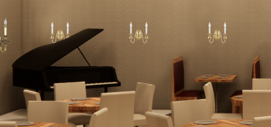 Low lighting is appropriate for upscale and fine dining restaurants. It creates an inti- mate and relaxing environment that en- courages guests to be leisurely, confident, and to lean in to talk. a crisp white color of light will be used in the kitchen and bath- rooms .It help engagement and create a lively atmosphere. Moreover, it emphasise and accentuate colors.